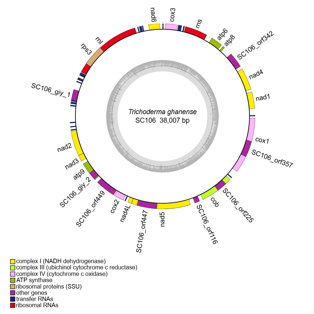 reference: Wang X, Wang Z, Yang F, Lin R, Liu T. Assembly, Annotation, and Comparative Analysis of Mitochondrial Genomes in Trichoderma. International Journal of Molecular Sciences. 2024, 25(22):12140.