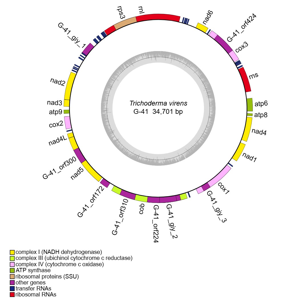 reference: Wang X, Wang Z, Yang F, Lin R, Liu T. Assembly, Annotation, and Comparative Analysis of Mitochondrial Genomes in Trichoderma. International Journal of Molecular Sciences. 2024, 25(22):12140.