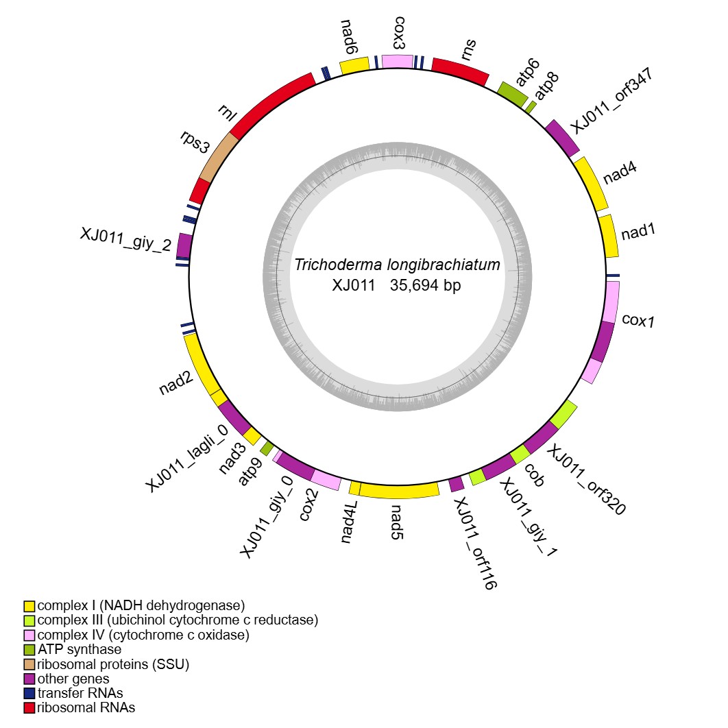 reference: Wang X, Wang Z, Yang F, Lin R, Liu T. Assembly, Annotation, and Comparative Analysis of Mitochondrial Genomes in Trichoderma. International Journal of Molecular Sciences. 2024, 25(22):12140.