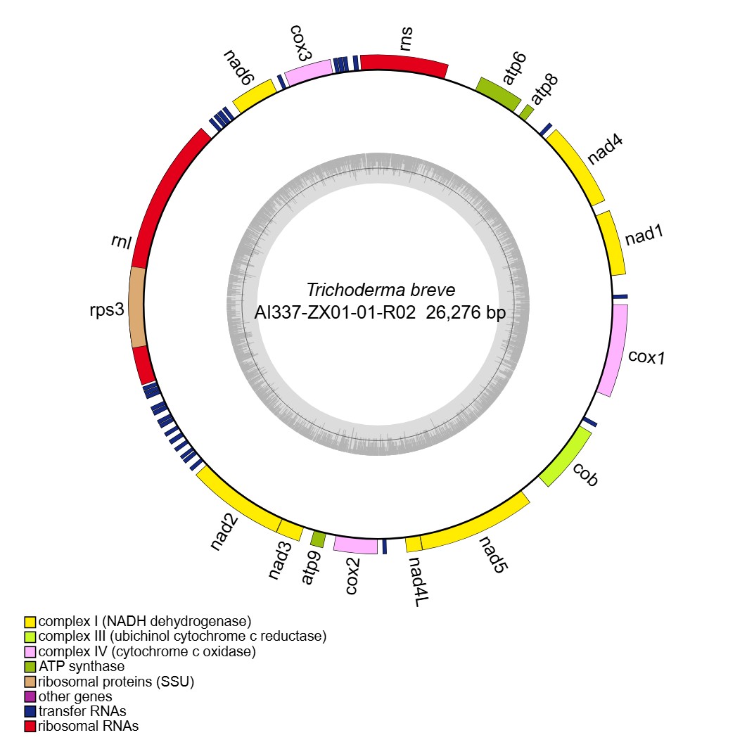 reference: Wang X, Wang Z, Yang F, Lin R, Liu T. Assembly, Annotation, and Comparative Analysis of Mitochondrial Genomes in Trichoderma. International Journal of Molecular Sciences. 2024, 25(22):12140.