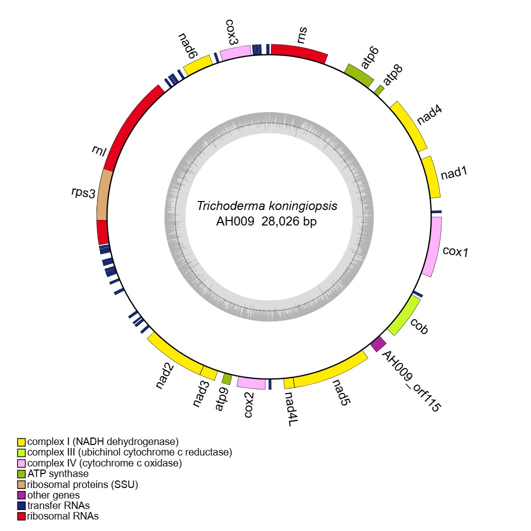 reference: Wang X, Wang Z, Yang F, Lin R, Liu T. Assembly, Annotation, and Comparative Analysis of Mitochondrial Genomes in Trichoderma. International Journal of Molecular Sciences. 2024, 25(22):12140.