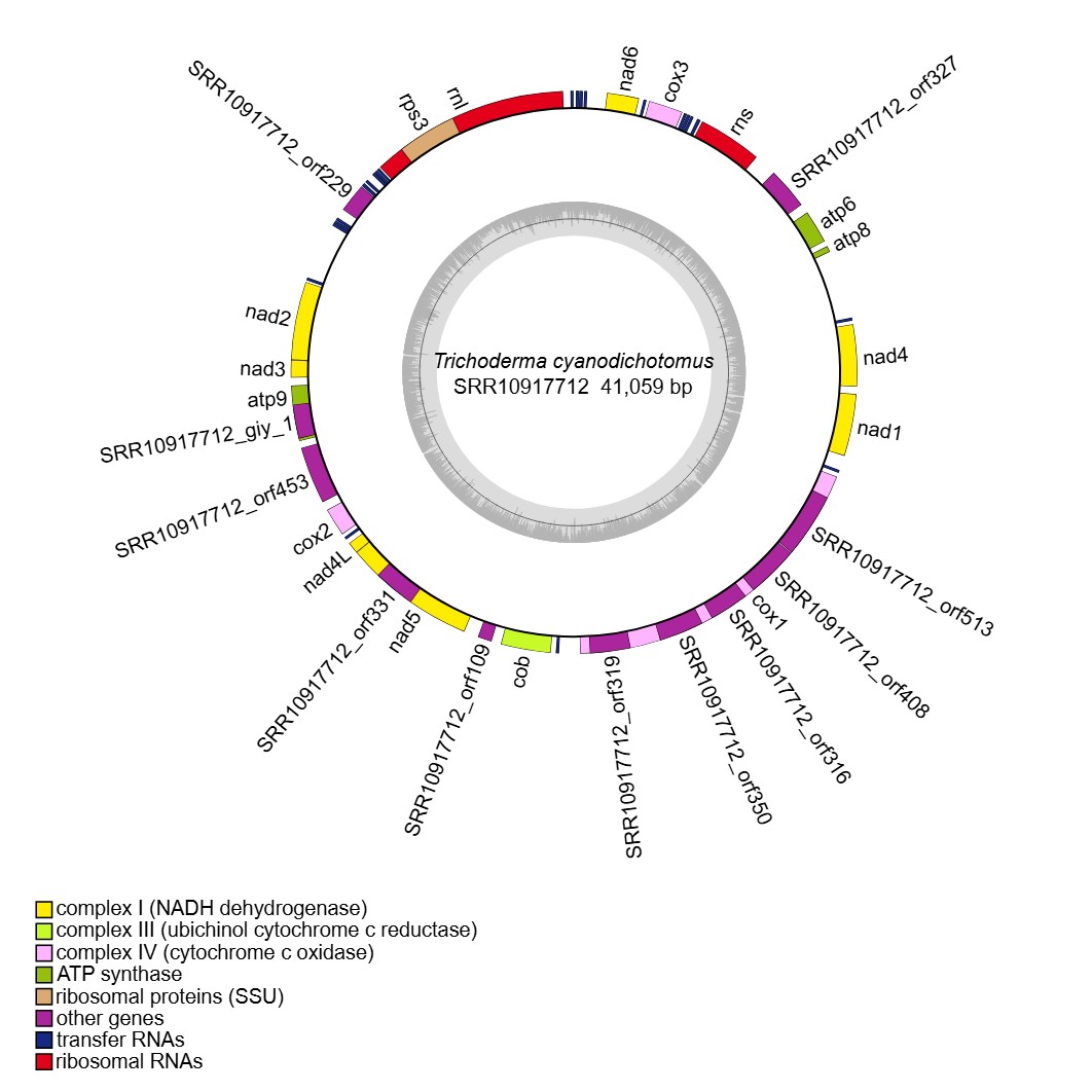 reference: Wang X, Wang Z, Yang F, Lin R, Liu T. Assembly, Annotation, and Comparative Analysis of Mitochondrial Genomes in Trichoderma. International Journal of Molecular Sciences. 2024, 25(22):12140.