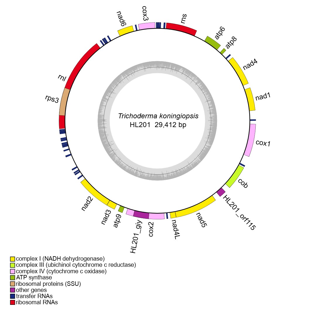 reference: Wang X, Wang Z, Yang F, Lin R, Liu T. Assembly, Annotation, and Comparative Analysis of Mitochondrial Genomes in Trichoderma. International Journal of Molecular Sciences. 2024, 25(22):12140.
