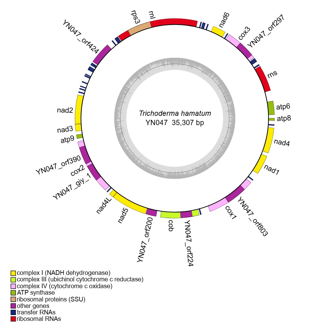 reference: Wang X, Wang Z, Yang F, Lin R, Liu T. Assembly, Annotation, and Comparative Analysis of Mitochondrial Genomes in Trichoderma. International Journal of Molecular Sciences. 2024, 25(22):12140.
