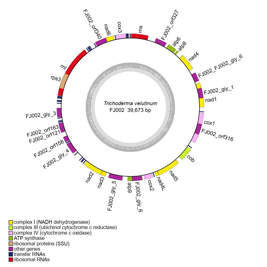 reference: Wang X, Wang Z, Yang F, Lin R, Liu T. Assembly, Annotation, and Comparative Analysis of Mitochondrial Genomes in Trichoderma. International Journal of Molecular Sciences. 2024, 25(22):12140.
