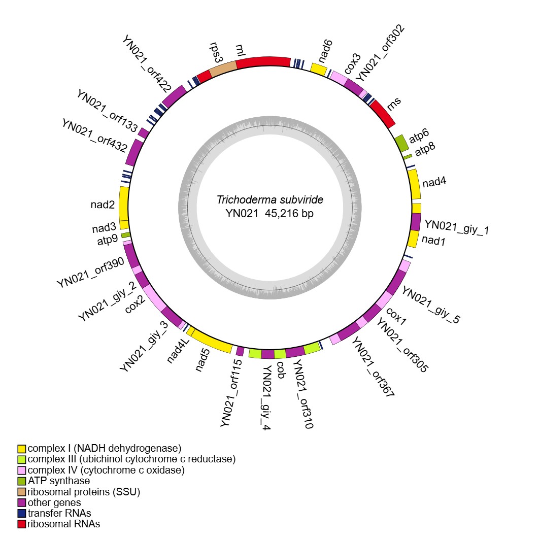 reference: Wang X, Wang Z, Yang F, Lin R, Liu T. Assembly, Annotation, and Comparative Analysis of Mitochondrial Genomes in Trichoderma. International Journal of Molecular Sciences. 2024, 25(22):12140.