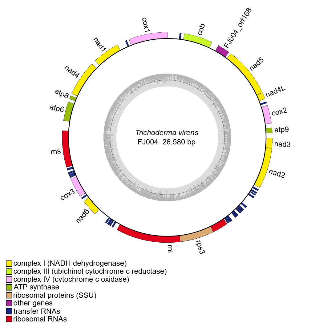 reference: Wang X, Wang Z, Yang F, Lin R, Liu T. Assembly, Annotation, and Comparative Analysis of Mitochondrial Genomes in Trichoderma. International Journal of Molecular Sciences. 2024, 25(22):12140.