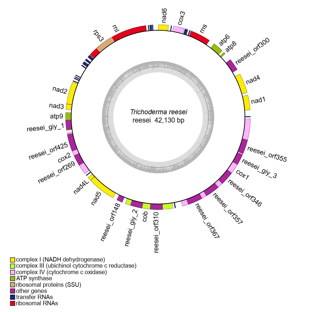 reference: Wang X, Wang Z, Yang F, Lin R, Liu T. Assembly, Annotation, and Comparative Analysis of Mitochondrial Genomes in Trichoderma. International Journal of Molecular Sciences. 2024, 25(22):12140.