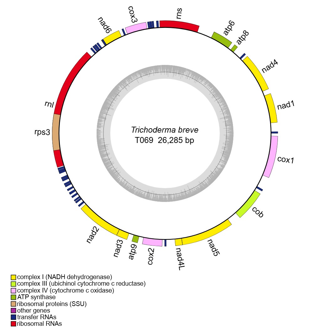 reference: Wang X, Wang Z, Yang F, Lin R, Liu T. Assembly, Annotation, and Comparative Analysis of Mitochondrial Genomes in Trichoderma. International Journal of Molecular Sciences. 2024, 25(22):12140.