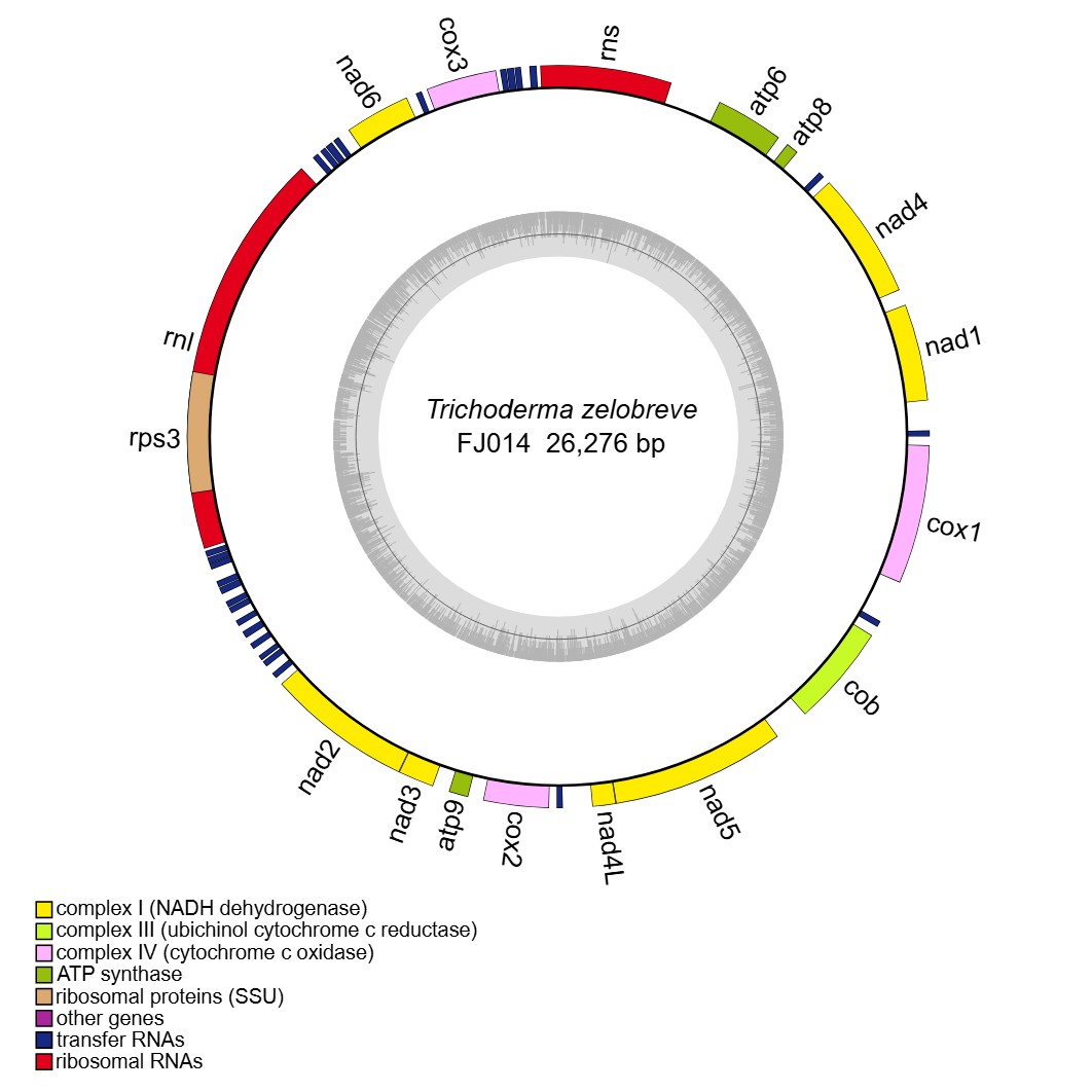 reference: Wang X, Wang Z, Yang F, Lin R, Liu T. Assembly, Annotation, and Comparative Analysis of Mitochondrial Genomes in Trichoderma. International Journal of Molecular Sciences. 2024, 25(22):12140.