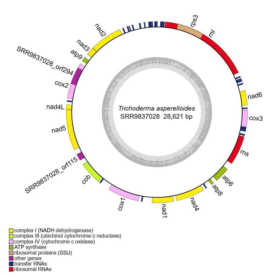 reference: Wang X, Wang Z, Yang F, Lin R, Liu T. Assembly, Annotation, and Comparative Analysis of Mitochondrial Genomes in Trichoderma. International Journal of Molecular Sciences. 2024, 25(22):12140.