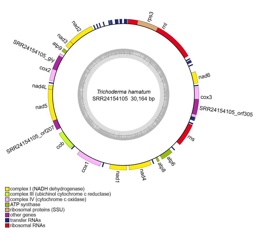 reference: Wang X, Wang Z, Yang F, Lin R, Liu T. Assembly, Annotation, and Comparative Analysis of Mitochondrial Genomes in Trichoderma. International Journal of Molecular Sciences. 2024, 25(22):12140.