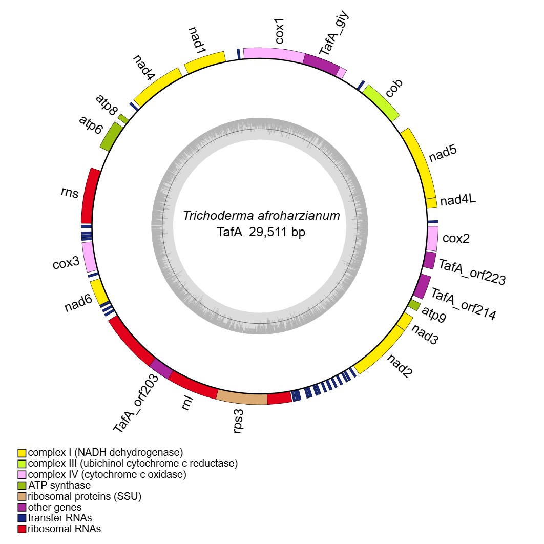reference: Özkalekaya E, Doğan Ö, Budak M, Korkmaz E. An insight into mitochondrial genomes of Trichoderma afroharzianum strains: a comparative and evolutionary analysis. Research Square. 2022. DOI: 10.21203/rs.3.rs-2132004.