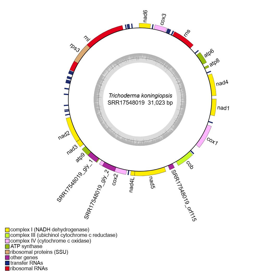 reference: Wang X, Wang Z, Yang F, Lin R, Liu T. Assembly, Annotation, and Comparative Analysis of Mitochondrial Genomes in Trichoderma. International Journal of Molecular Sciences. 2024, 25(22):12140.